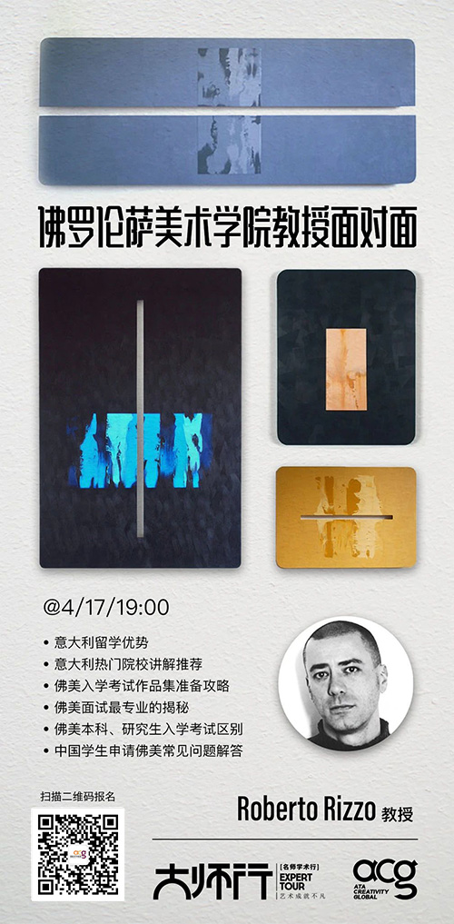 ACG为大家邀请到了艺术生的留学圣地——曾担任莱切国立美术学院、佛罗伦萨美术学院的任课教师Roberto Rizzo,为大家线上带来关于意大利留学和佛罗伦萨美术学院申请的讲座。