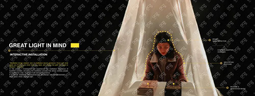 2、体验者戴上脑波检测仪,脑波会控制装置的灯光——“视觉” 。