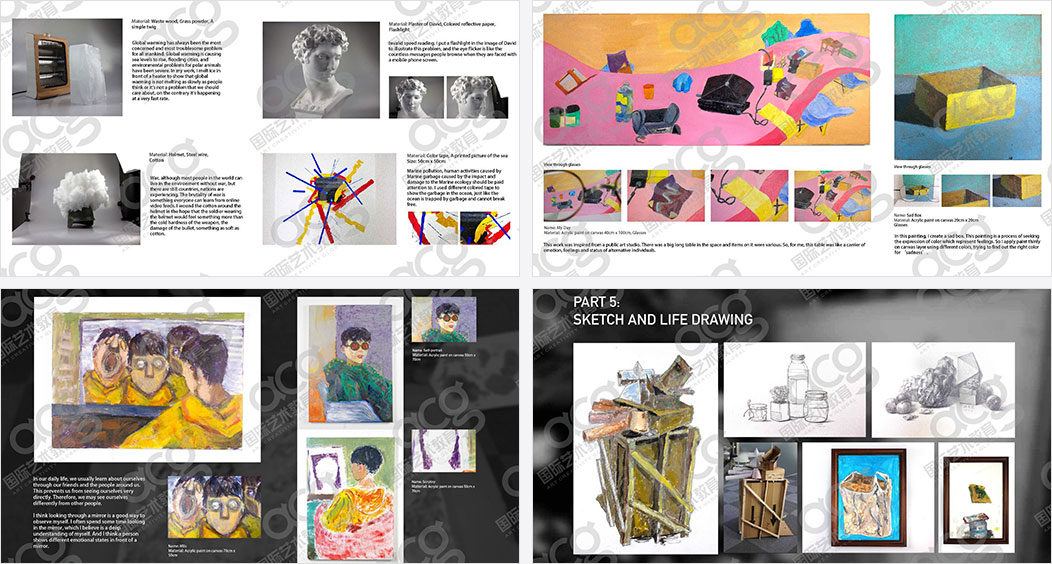 作品集应当反映个人的艺术背景和经历,体现个人的最佳能力,不建议同学们仅仅为了体现媒形式介的多样性而牺牲质量。作品集应当包含15-20张近期作品或(对于电影申请人)电影卷轴或两部分电影作品,以及一张近期通过观察完成的素描。
